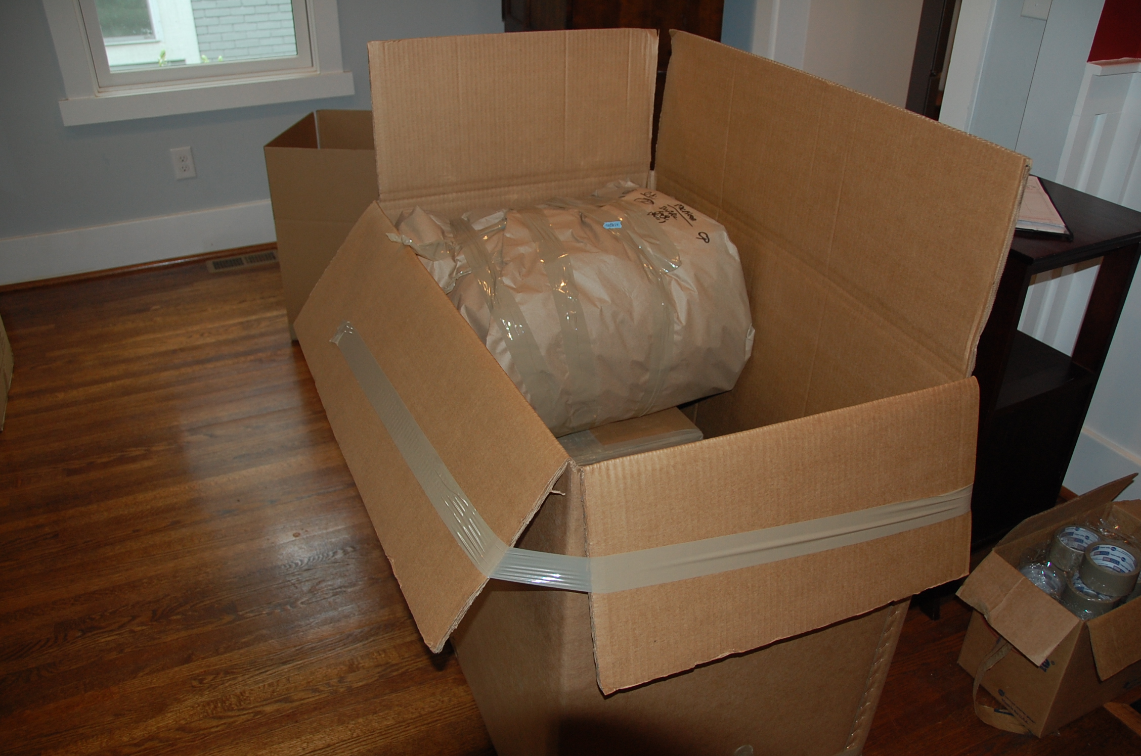 There weren’t a lot of surprises today, but one of them was that the “tri-fold” box that is used for UAB turns out not to be triangular as I was expecting. I suppose if I had looked at the dimensions in our papers I might have realized a “tri-fold” box had 4 sides, but in my head I was imagining a tri-fold box that had three sides. It seemed like it would be pretty inefficient, but since we are talking about the government I wasn’t about to put it past anyone. So the mysterious “tri-fold” is a decent sized very sturdy box, three of which are now full of clothes and other things that will be delivered to our apartment next week.