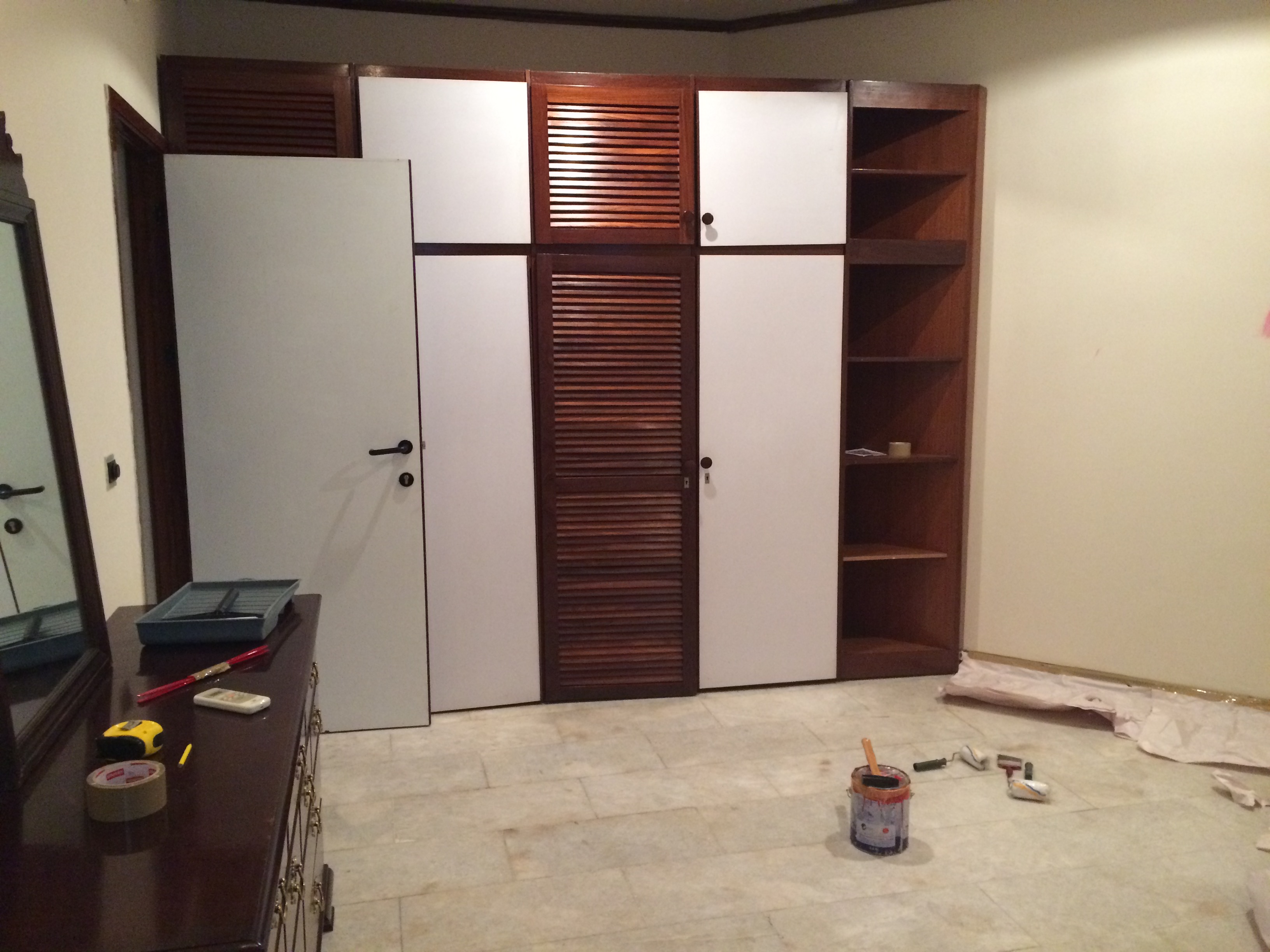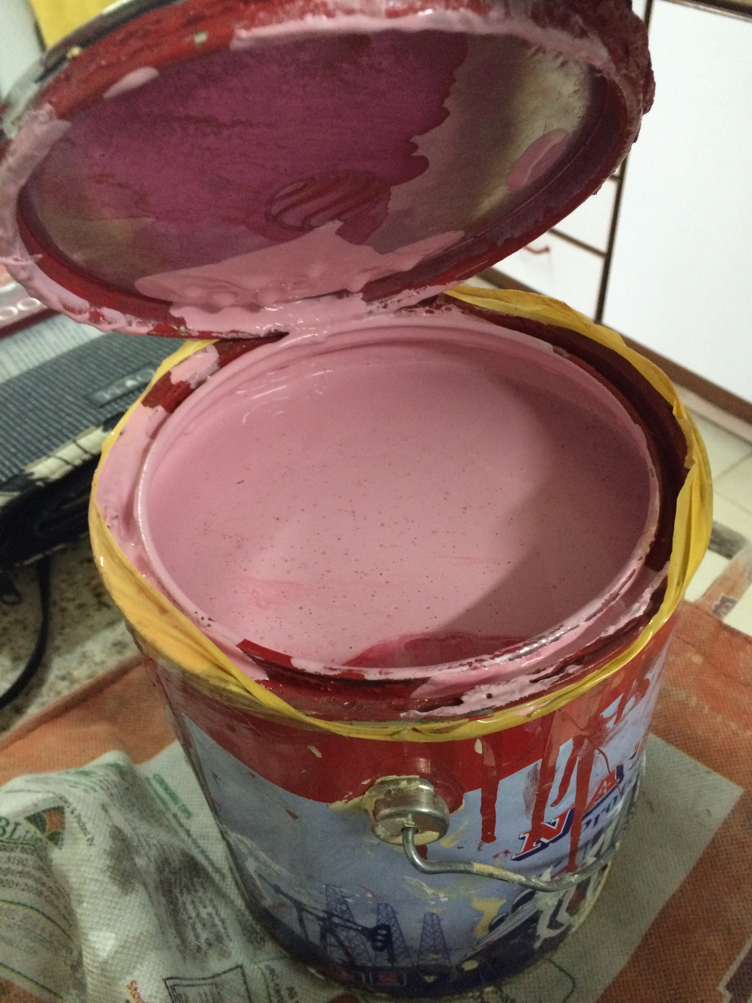Like Home Depot every can of paint at the stall starts out white. But, unlike the HD, there is no “formula” or machine to measure the amount of color that needs to be added to the white to get the right shade of, say, pink. So I also only had one shot to get the right amount. There would be no going back and saying “Hey, could you make me another gallon of ‘C’s Room Pink'” cause you would never, ever be able to get a match.